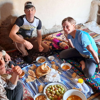 Là, arrivée à la première ville, Uchkurgan, je suis accueillie de la meilleure des manières par un jeune de 19 ans, Saidbek, qui m'invite d'abord à manger chez sa famille, et finalement à passer une partie du week-end.