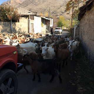 Le lendemain, on repart pour une petite balade dans la belle vallée entourant le monastère, réputée pour sa faune et sa flore: elle héberge le bezoar, le bouquetin local (dont j’aperçois un troupeau qui renifle la table de petit-dej au moment où je me lève), des espèces d’oiseaux rares, et parait-il la fameuse panthère du Caucase.