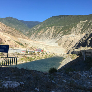 Après les 27km, les tunnels sont plus espacés, j’ai l’occasion d’avoir de beaux panoramas sur la rivière Coruh, que j’aurais suivi en vélo presque de sa naissance à son point de chute dans la mer noire, près de Batumi en Géorgie. Le cours d’eau Coruh (c’est le nom turc, Chorokh en anglais) est qualifié de rivière, mais ses nombreux réservoirs lui donnent parfois des allures de lac, et la taille de son lit parfois des allures de Fleuve.
