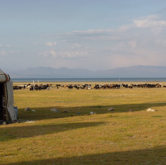 Historiquement, le lac Song-Kul est un haut-lieu de la vie semi-nomade kirghize, et se parsèment de yourtes pour les mois d'été, laissant chevaux et vaches brouter ses verts pâturages. Aujourd'hui, c'est toujours le cas, même si en plus, il y a ces quelques yourtes "artificielles" et un peu plus confortables que celles des autochtones, accueillant les touristes le temps d'une nuitée au bord du lac.