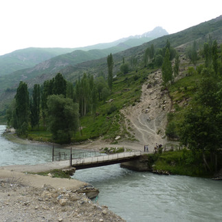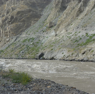 Je mets 4 jours pour parcourir la partie habitée de la vallée, où se succèdent tous les 15/20 km environ des hameaux, formés par des oasis de verdure dans un paysage autrement assez rocailleux, austère, peuplés de pentes abruptes propices aux éboulements, de ponts de singe sauvages qui traversent la rivière et de sommets vertigineux. Et je suis finalement face à un grand contraste, entre les parties où je pédale dans une grande solitude et un certain silence (je dois croiser 2/3 voitures par jour) sur une piste d'une qualité très diverse, tantôt très sablonneuse, tantôt très rocailleuse, et quelque fois agréablement lisse, et l'hospitalité exubérante des villageois dans les hameaux, qui m'accueillent plusieurs fois par jour pour le chai, et pour me gaver de leurs plats locaux.