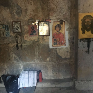Le samedi, avant de repartir en vélo,on se lance dans une dernière excursion monastèriale en stop, pour visiter le monastère d’Akhtala, le plus beau de la région,selon nos chauffeurs de la veille. Effectivement, celui-ci est mieux préservé, et les fresques de son Église valent vraiment le coup d’œil.